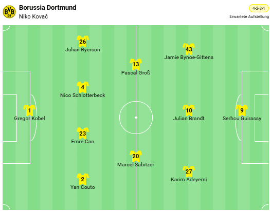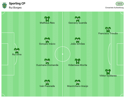 Detta kan ha att göra med att Rui Borges har gått ifrån det tremannaförsvar som tidigare var så populärt i huvudstaden och nu föredrar en klassisk 4-4-2 eller 4-2-3-1-uppställning. Tränaren kommer dock definitivt att få klara sig utan sin lagkapten och mittback i det första mötet. Dansken Morten Hjulmand är avstängd. Däremot väntas skyttekungen Victor Gyökeres ta plats i startelvan. Gyökeres medverkan har begränsats av klubben i flera veckor, eftersom svensken inte är i fysisk form. I de två viktiga matcherna mot BVB hoppas portugiserna dock att 75-miljonersmannen, som har gjort lika många mål på 34 tävlingsmatcher den här säsongen, kommer att vara tillgänglig.