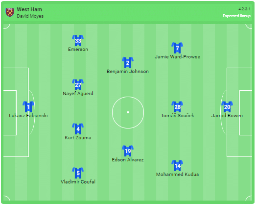Trolig startelva för West Ham: