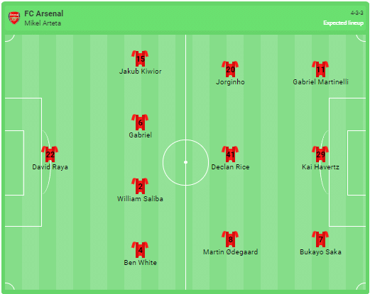 Förväntad Arsenal-uppställning: